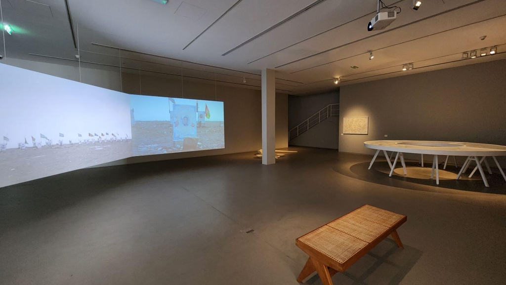 回到小鎮艾爾-達依德,該處包含兩座展場:由艾爾-達依德舊診所改建而成的展場,以及策展人的祖父謝赫卡里.賓.穆罕默德.艾爾-凱西米(Sheikh Khalid bin Mohammed Al Qasimi)的簡易皇宮及農場。不瞞讀者說,特地在有限時間下「遠征」至此處,便是為了一睹唯一和台灣有直接關係的創作者──由大馬旅台藝術家區秀詒(1978–)創作之作品。區秀詒此次將2022年於就在畫廊展出的個展《行星旅人,與其破碎的歌》中多件作品移至沙迦展出。