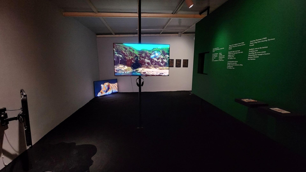 此次的展出若單純將其簡化為恩威佐的遺願,其實將有點輕視了總策劃人服爾.艾爾-凱西米在此展中所下的功夫。「歷史性的思考當下」不僅嘗試擴張恩威佐生前所想像的「全球南方宇宙」,更可以看到許多細膩的女性觀點及視角。透過大量的歌曲、聲音及音樂,服爾.艾爾-凱西米創造出某種更為輕巧及細膩的觀展經驗,適度緩和了此屆沙迦雙年展過於龐大的本質性問題。相較之下,少數男性藝術家所堅持的檔案式展示方式在此次雙年展中反而顯得無趣許多。