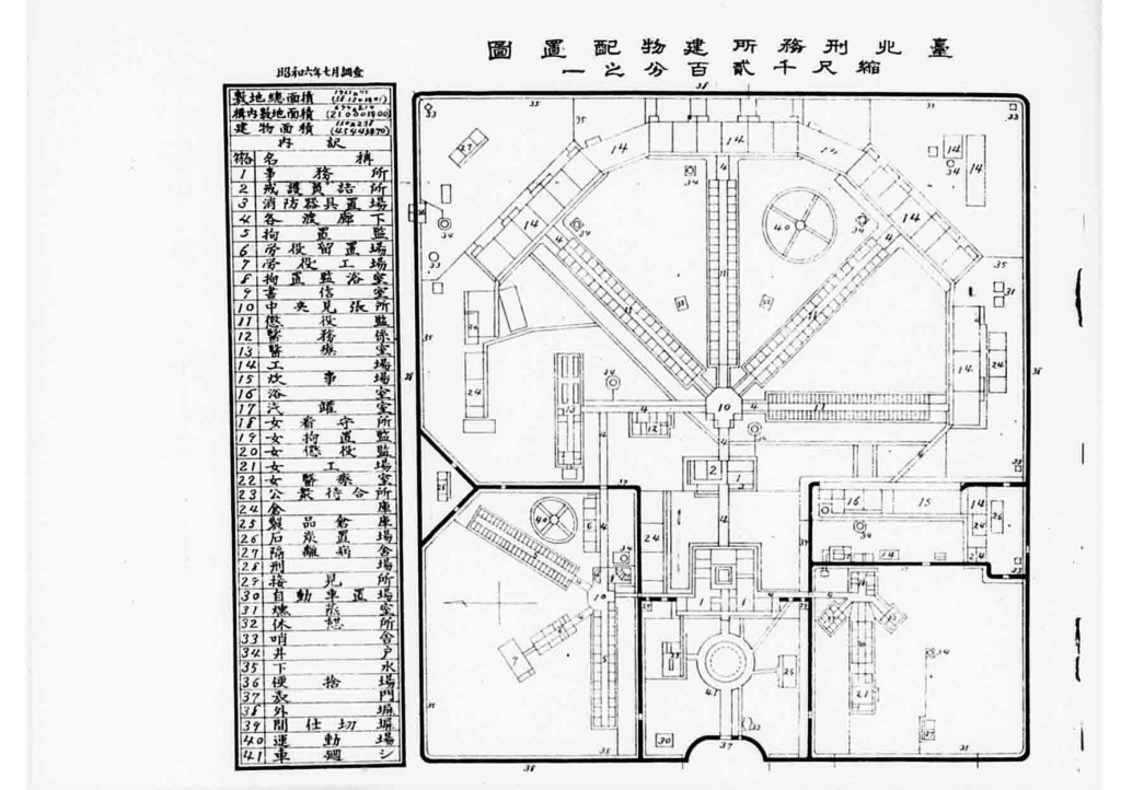歷經脫亞入歐的日本,在統治臺灣後,參考歐美獄政管理在臺灣蓋起了仿效美國賓州式的輻射型監獄。其中臺北刑務所在1904年啟用,這是臺灣唯一,也是全世界唯一用臺北內湖金面山所產城牆石建造的賓州式監獄。這一座監獄除了高聳的圍牆,監獄建材的搬運與紅磚、黑瓦的燒製皆來自受刑的囚犯。