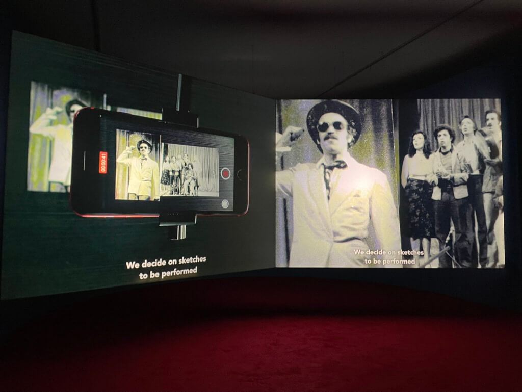 對於凱西米而言,2002年恩維佐所策劃的文件大展是她的策展啟蒙,這也是邀請恩維佐策劃的主要原因。在恩維佐病逝前,凱西米前往探視與討論展覽的後續,恩維佐希望凱西米接手,做一個屬於她自己的,而不是恩維佐的展覽。(註1)因此,凱西米與其策展團隊採用恩維佐所下的標題「歷史性地思考當下」作為雙年展之精神,透過研究恩維佐過往的展覽、聯繫曾經與恩威佐工作過的藝術家(註2)、以關鍵字勾勒後殖民圖像,並加入當下對於藝術與政治的想法來創造策展路徑。在此狀況之下,此屆沙迦雙年展可說是對恩維佐策展貢獻的致敬,同時也可說是2002年文件大展至今,政治與藝術相關作品匯聚的中東版本。