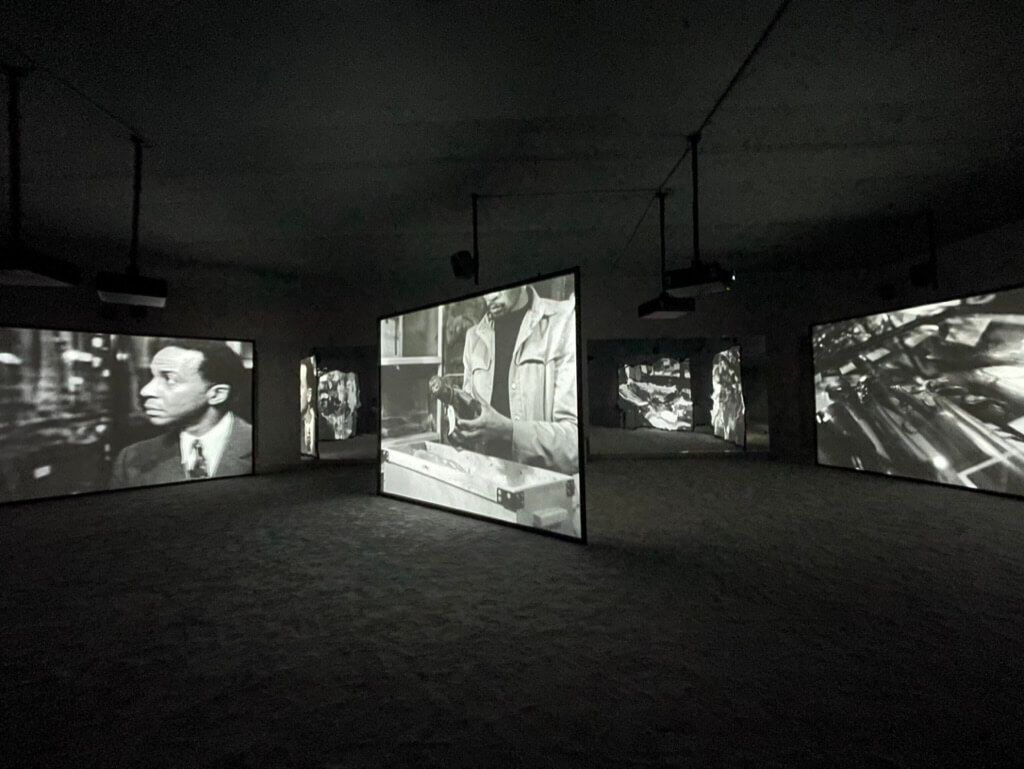 英國導演藝術家Isaac Julien曾參與恩維佐2015年威尼斯雙年展,在此展覽中他在「書法廣場」的展區呈現「再一次」《Once Again… (Statues Never Die)》,其作品可以說明如何歷史性地思考當下。此作品為五個銀幕頻道黑白影像空間裝置,透過黑白影片重演20世紀中藝評家Alain Locke與收藏者Albert C. Barnes對於非洲藝術的辯論,既回看藝術史,也以當代視角觀看過往對於種族的意識形態,並在影片中帶入同志曖昧情誼,讓歷史、當代多層次交會。這個作品可以說明恩威佐所說的:「沙迦雙年展既作為一處能夠破壞藝術單語主義之地(monolingualism),又可作為歷史性思考當下的另一處可能的理論空間」。一方面,殖民/後殖民論述透過藝術作品呈現,另一方面作品拓展理論面向的侷限,抵達學術無法觸及之地,並以「星叢」作為某種可能的交會、群聚,創造一處不曾被討論的空間。
