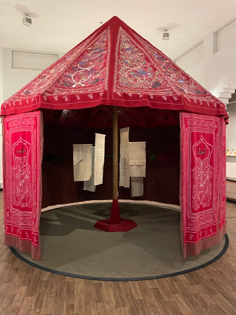 例如藝術家Mounira Al Solh的作品 《A day is as long as a year》(2022)呈現中東地區的政治衝突與人民的流離失所,尤其是女性的苦難。她製作一個大型帳篷,帳篷上繡有超過三十位婦女自身的經歷與個人私歷史,包括在流亡期間遭受強暴、在難民營的患難情誼、跟家人分離之苦等等。此一帳篷的形式來自19世紀伊斯蘭宮廷,作王權和繁榮的象徵,通常是屬於男人的空間。然而,此一作品轉換父權力空間為女性私密的口述所在,具有高度批判性。