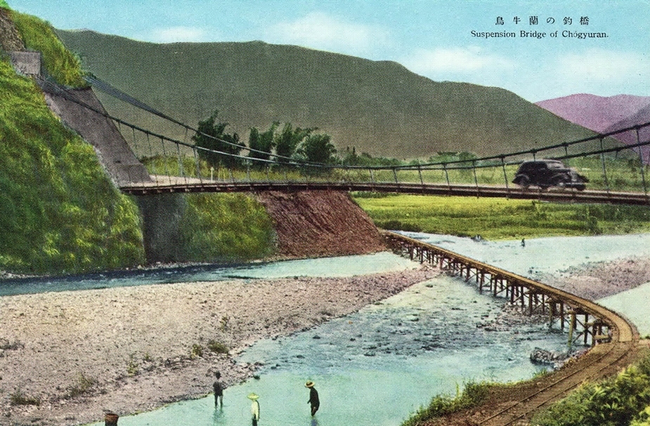日本統治時期的烏牛欄吊橋繪葉書。(©維基百科)
