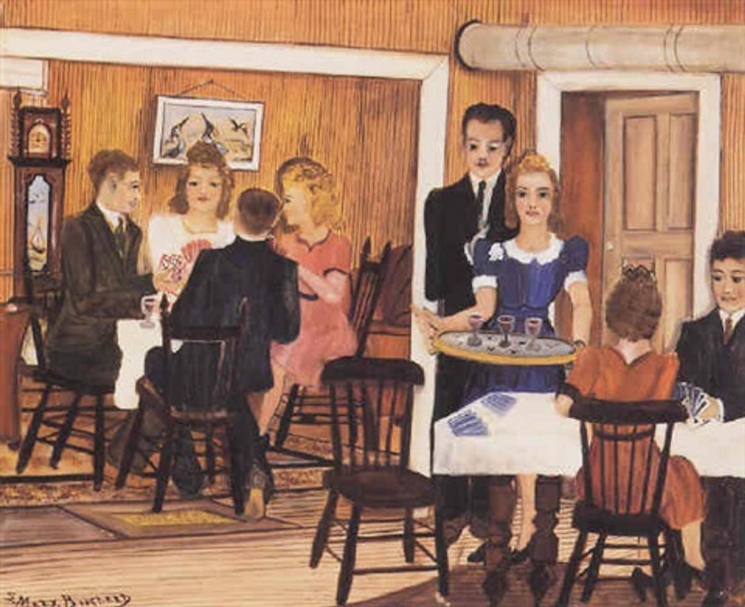 西蒙.瑪莉.布夏爾(Simone Mary Bouchard)《玩牌者》(The Card Players),絹本油畫,40 x 48.9cm,年代不詳。(© http://www.artnet.com/)