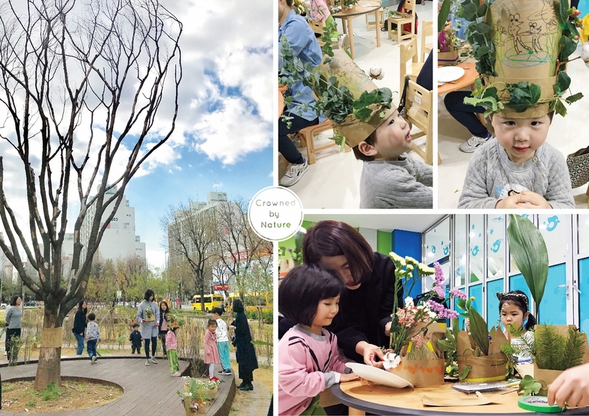 2018年作者受韓國高陽市兒童博物館之邀請舉辦「Crowned by Nature」工作坊。(林宇儂提供)