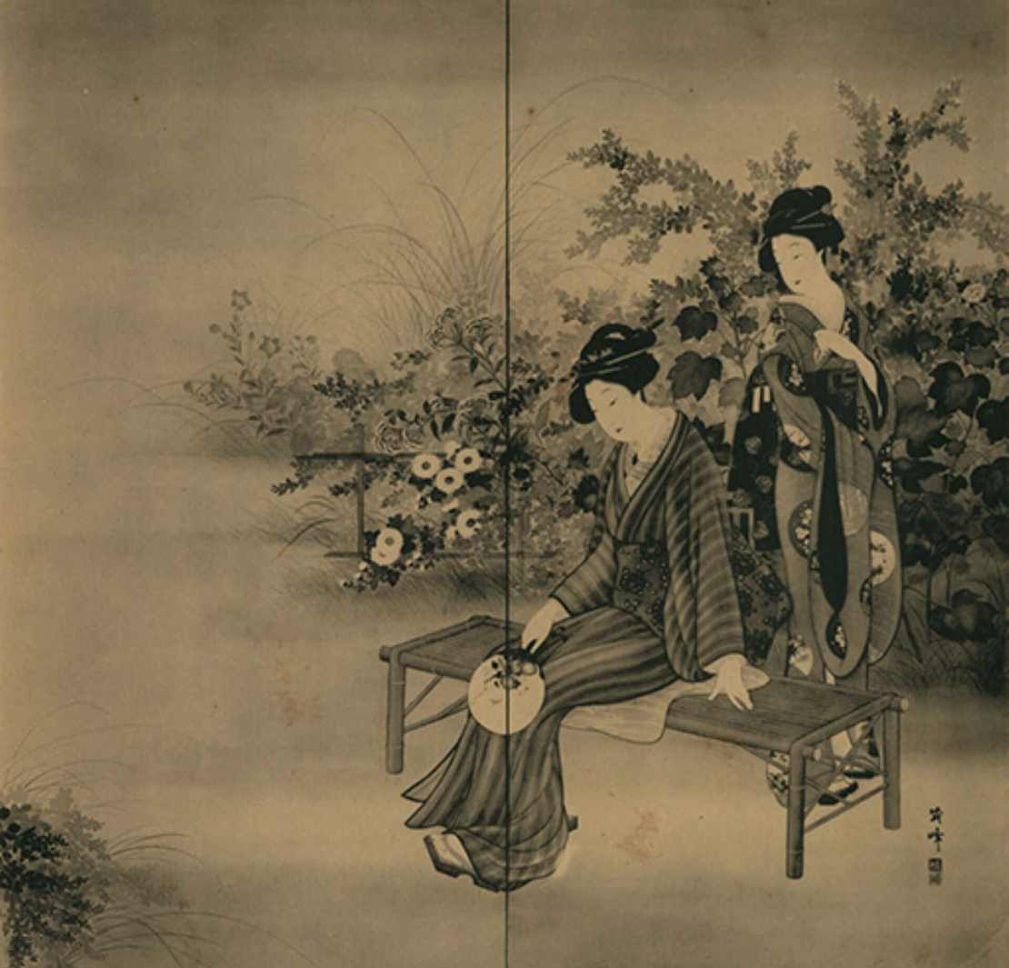 貴田成峰對老師之女畫作的抄襲(或致敬)。跨越了數十年的時光,以及從東京到屏東兩地的距離,某種程度反映歌川派落腳臺灣的特殊面向,讓人玩味。根據日本學者的研究,歌川若菜長年活躍於歐美,婚後回到日本便消失匿跡。兩人是否相識?為何多次入選臺展的貴田成峰會「抄襲」這位消失畫家的作品?這或許將是梳理日本浮世繪在臺灣發展的線索之一。