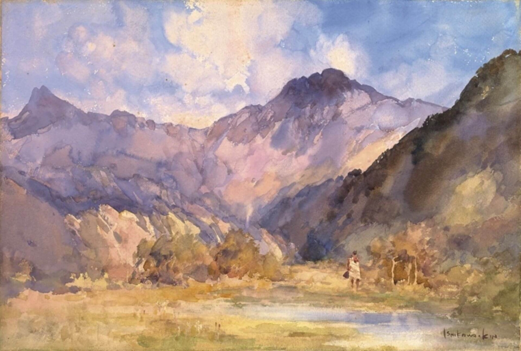 未來有機會,也將考察私人收藏的石川欽一郎《次高山》作畫地點。根據畫面的泰雅族點景人物,以及遠景的山勢來推測,取景地點海拔應高於國美館的《臺灣次高山》,是深入山地完成的作品。石川欽一郎是在何時、何種契機,前往何處作畫,解答這個問題,也解答了我們對臺灣歷史、文化發展的疑問。
