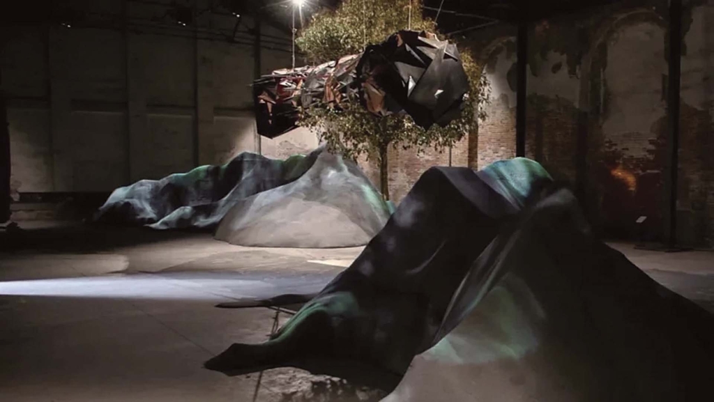 當代媒介山水的生產,因媒材與媒介的替代使用,使藝術家的具身性必須建立在「多元的水墨本體論」上(註1)。在非水非墨下,山水美學的物質性解放,成為創作者與論者精神所在的線索。他們一方面要消融自然和科技的矛盾,另一方面也會藉科技的理性,試圖引發觀者的感性體驗。