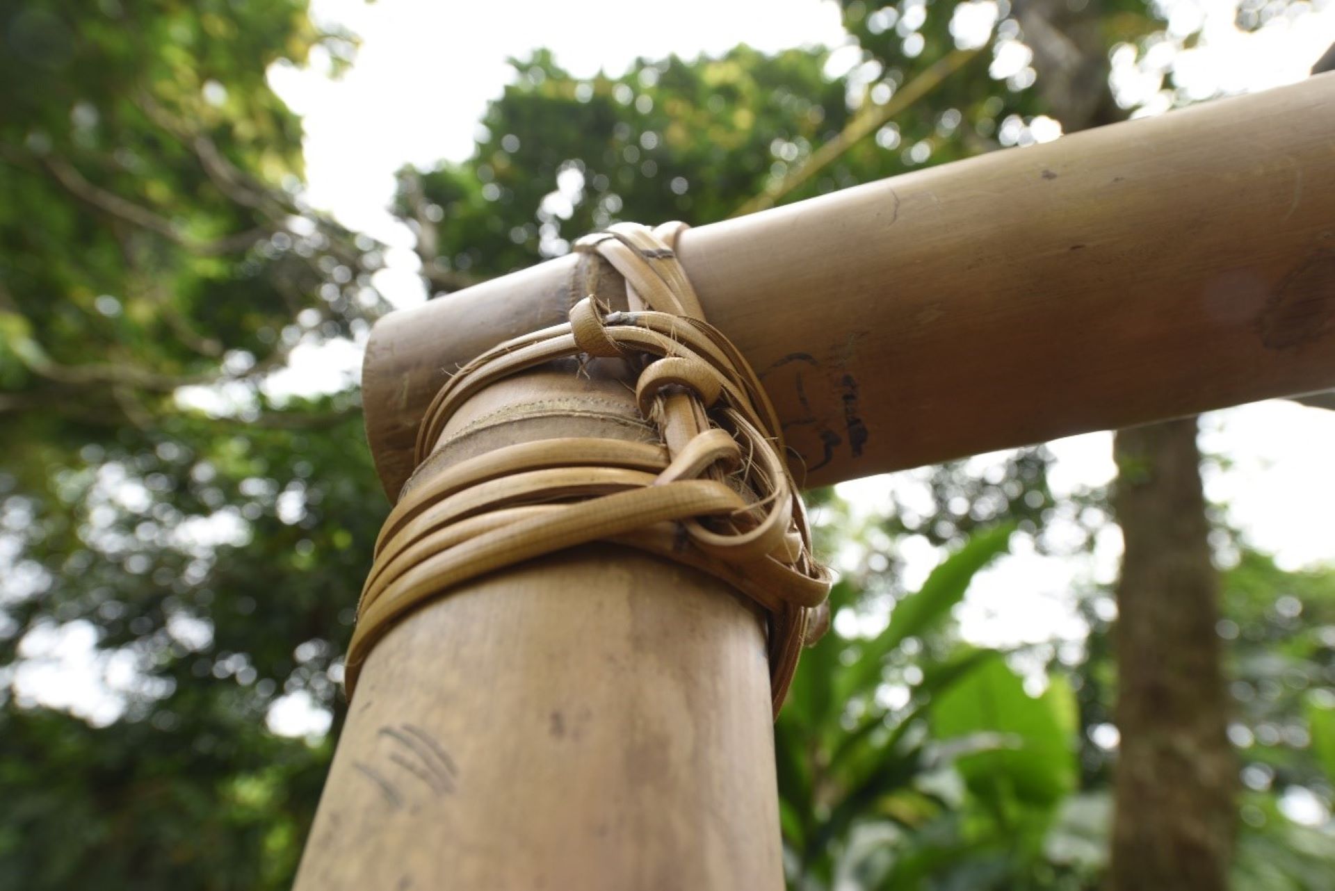 深坑蔡班長示範如何使用黃藤興建草寮。(攝影/蕭文杰)