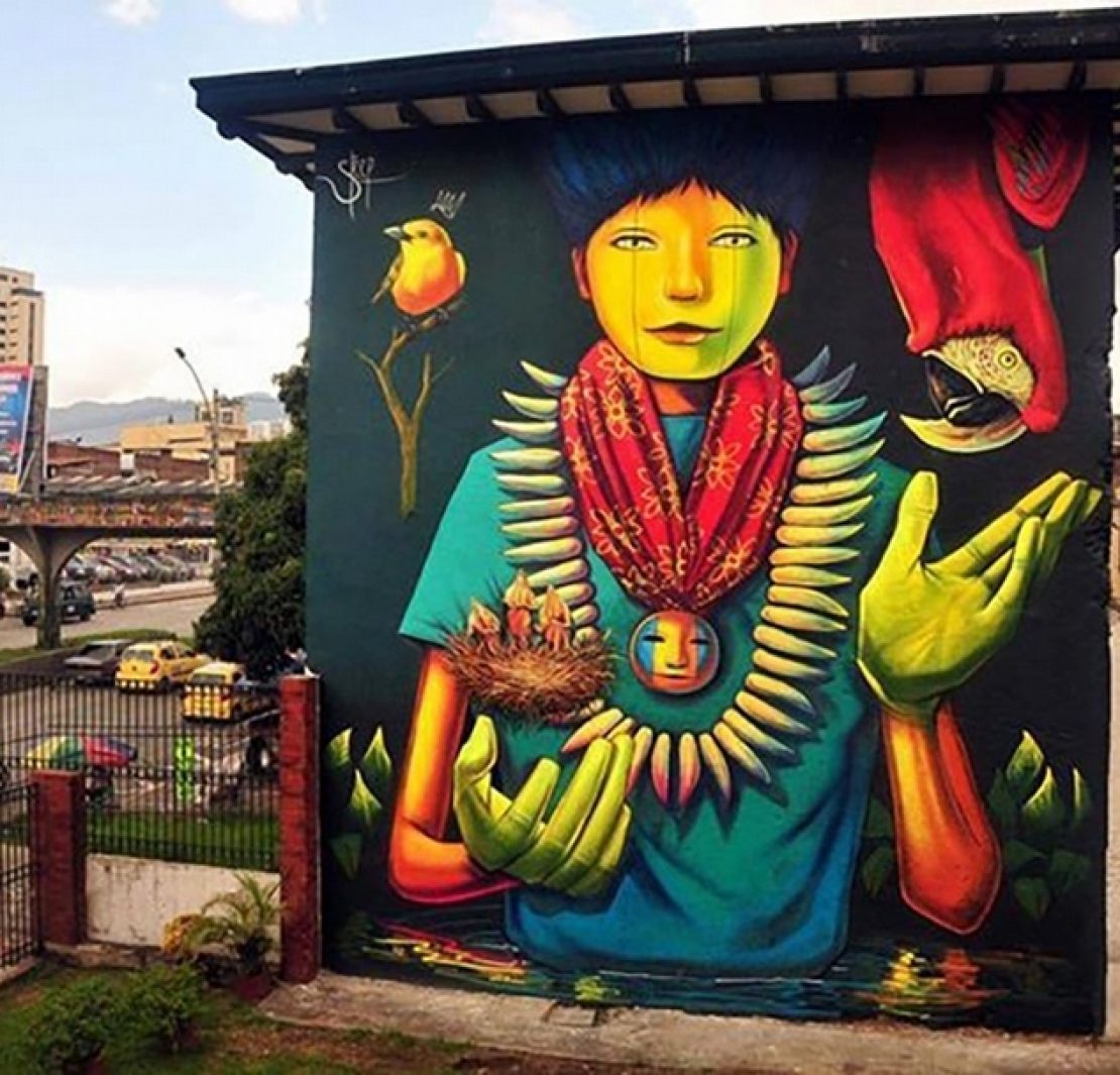 從標的建築物上巨大的委託創作到被非法塗鴉客簽名層層交疊覆蓋的牆壁,卡利市市容迎面而來的是各種亮麗鮮活的色彩,東北亞國家略顯陰鬱而節制的城市樣貌頓時成為強烈的對照。不久後在首都波哥大,我將被那可以溯及南美現代藝術史受到國際主義影響的壁畫傳統,與新世紀的拉丁美洲的安第斯山認同,以及紐約塗鴉客那種將自我表現與對體制的衝撞結合起來的街頭文化等,在此地匯聚形成的塗鴉勢力——他們熱衷於挑戰各種困難的攀爬和垂吊技能,非法塗鴉者不厭其煩地躲避著警方的追捕——多麽想要把整個首都的空白立面全部填滿的熱望所震懾。