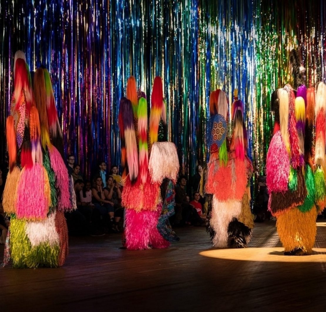 美國藝術家尼可.凱夫(Nick Cave)於紐約公園大道軍械庫(Park Avenue Armory)(註1)落幕的展覽演出「放下吧」(The Let Go) 應該是6月的紐約除了「驕傲月」(Pride Month)系列活動外最受關注、社群網站打卡次數最多的展覽(派對)之一。曾是紐約知名現代舞團阿爾文.艾利(Alvin Ailey)舞團的舞者,凱夫自1990年開始擔任芝加哥藝術學院(School of the Art Institute of Chicago)設計系系主任。穿著時髦的凱夫認為自己是一名視覺藝術家,只是擅長使作品舞動起來。他最廣為人知的系列作品是顏色繽紛、造型討好的「連聲衣」(Soundsuits)——一種由各種不同材質與形狀的布料拼裝而成的可穿戴式軟雕素。這系列作品發展於1992年起,是他對於當時洛杉磯警察毆打手無寸鐵的非裔美國人羅德尼.金(Rodney King)而引發的洛杉磯暴動的回應(註2),其藝術實踐試圖為這絕望的氛圍注入力量。