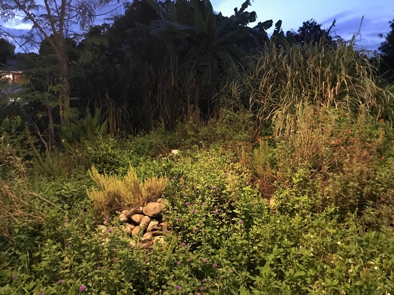 我第一次真的踏上這座土丘,就是來參與一場藝術行動。來自他鄉的藝術家在山裡帶著許多年輕人灑種、覆土、澆灌,小麥籽與社區園藝無序交錯,周遭的貓們親暱環繞在旁。可想而知,不出個把月,一整水桶的籽也就成了貓大麻吧。「這裡還住著一個印度人。」那時候,藝術家群彷彿老鄰居一樣說道。曾經也來這裡採訪一位劇場人。往返高雄台北的生活間,這裡是她偶爾留宿的分租空間。「這裡真的很便宜啊!」她說,但591租屋網上找不到,都要有熟人相問才會傳出消息,「妳要租我可以幫妳問問。」我們邊爬坡,細雨裡她邊尖叫邊閃躲,好幾次差點踩上巴掌大的螺。