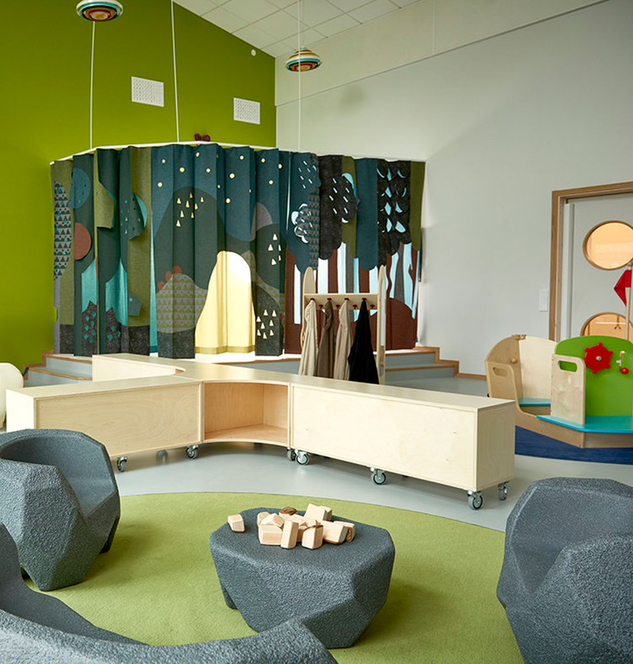 房間代表一個寧靜而鼓舞人心的地方,可以在這裡找到平靜,有時間幻想、傾聽,且感到安全。透過故事啟發而發展出的房間/空間,利用光線和陰影營造出氛圍和魔力,為兒童和成人提供輕鬆的氛圍。