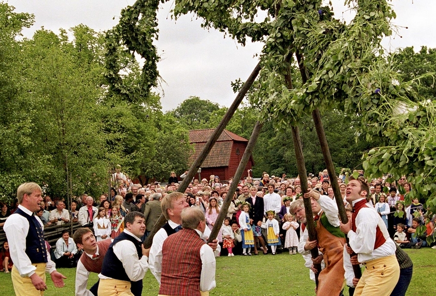在斯堪森博物館(Skansen)的夏日慶典Majstångsresning。(攝影/Marie Andersson)