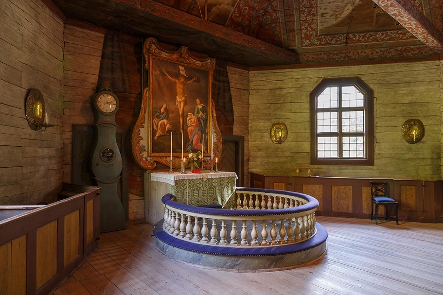 斯堪森博物館(Skansen)中的Seglora教堂內部。(©CEphoto, Uwe Aranas)