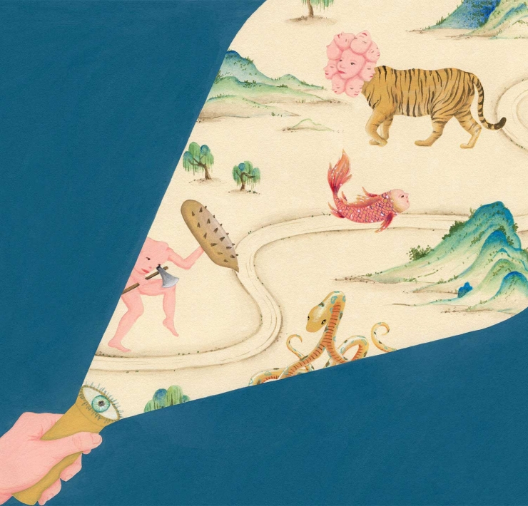 五紋刺綉同毛褐,七寶樓台亦草廬。在昌明前的年代,作為第三空間的物種即有離間之能力。他們利用喜跑、善游、善飛的物種傳訊,借用忠誠與無辜的物種形象製造偽信息。沒有活物做信使時,間離者必須學習手工技能,在短時內將絹帛折成魚形放走;找塊好木頭削成游禽,放到河渠漂走;找個竹子紙片,把自己扎成一個風箏飛走。進入物理、數理的研究領域,他們採聲音共鳴的物理原理,或明礬水寫信的化學作用,在邏輯的拆解與復合上,有了更科學的欺敵系統,可以讓更多物種流入似是而非、莫明其妙的第三空間。