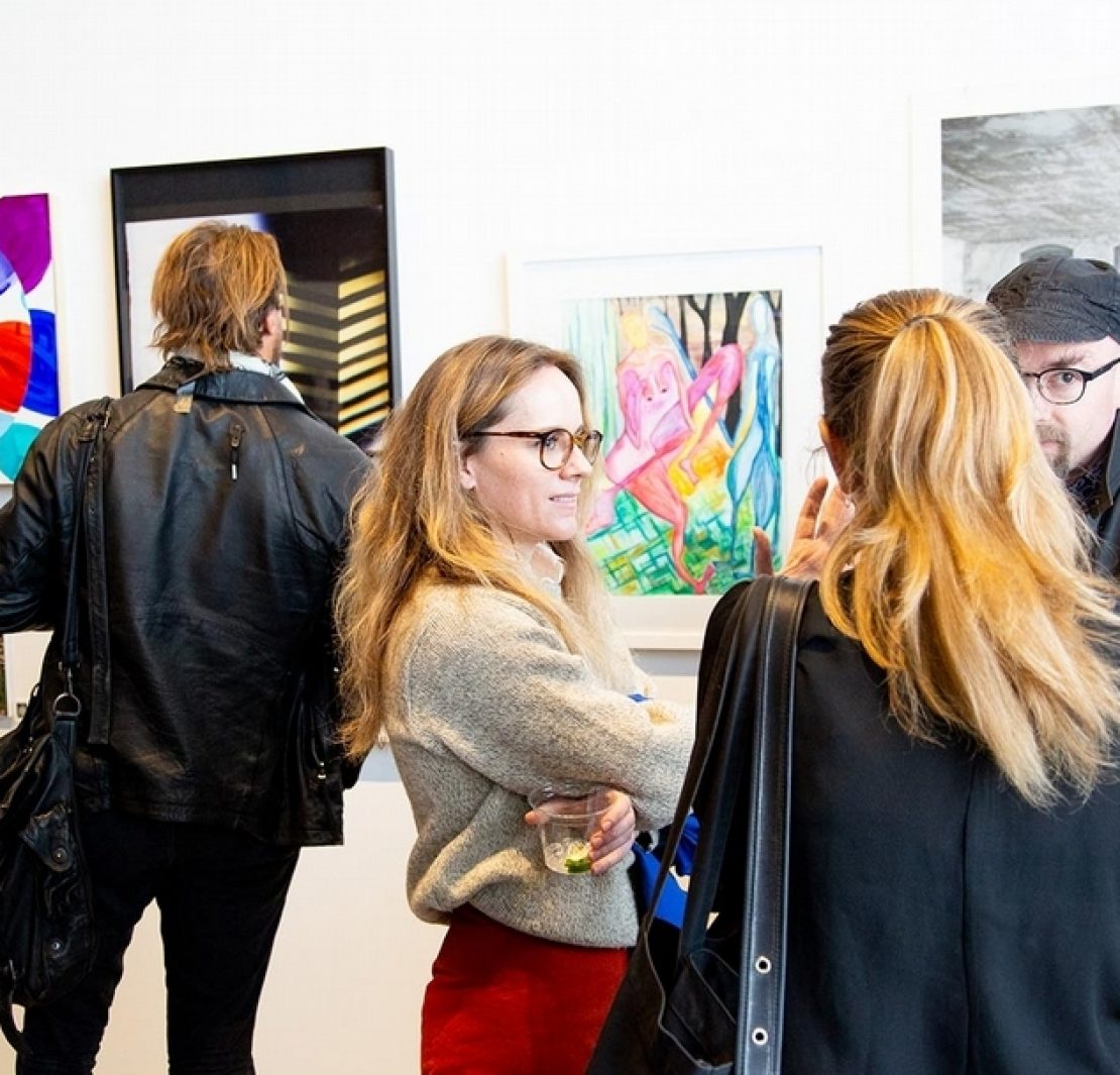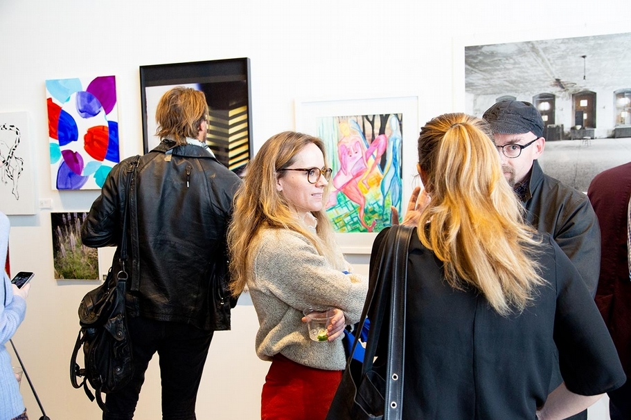 雕塑中心(Sculpture Center)的「好運抽」(Lucky Draw)募款義賣活動開始前瀏覽作品的現場民眾。(攝影/Mina Magda,Sculpture Center提供)