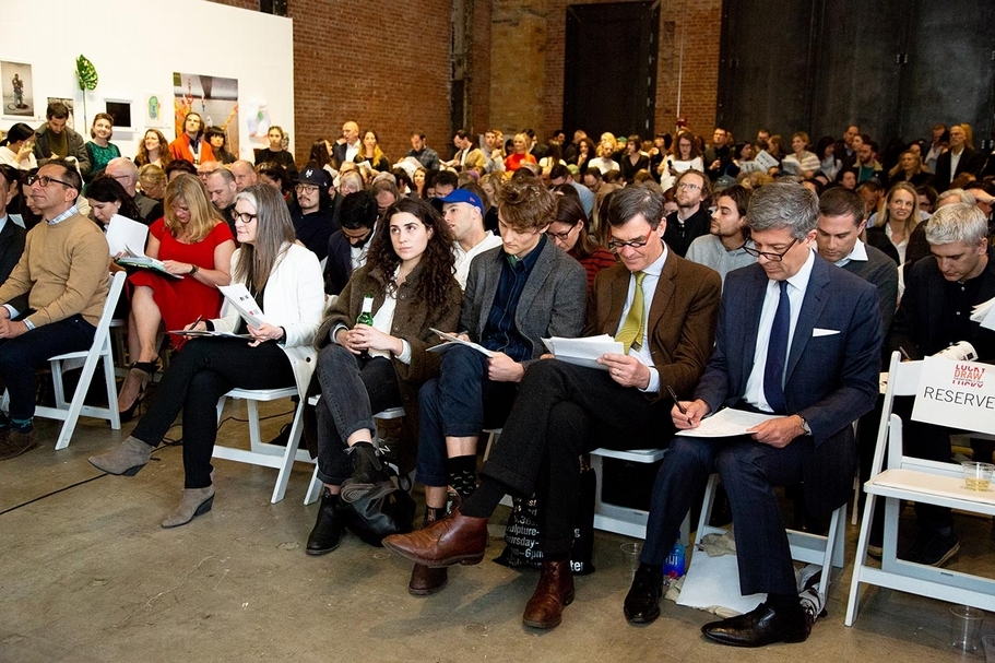 「好運抽」(Lucky Draw)募款義賣活動現場等待叫號的參與民眾。(攝影/Mina Magda,Sculpture Center提供)