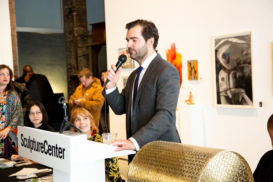 「好運抽」(Lucky Draw)募款義賣活動的主持人為藝術顧問羅威爾.派帝特(Lowell Pettit)。(攝影/Mina Magda,Sculpture Center提供)