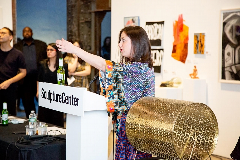 雕塑中心(Sculpture Center)館長瑪莉.瑟路堤(Mary Ceruti)致詞。(攝影/Mina Magda,Sculpture Center提供)