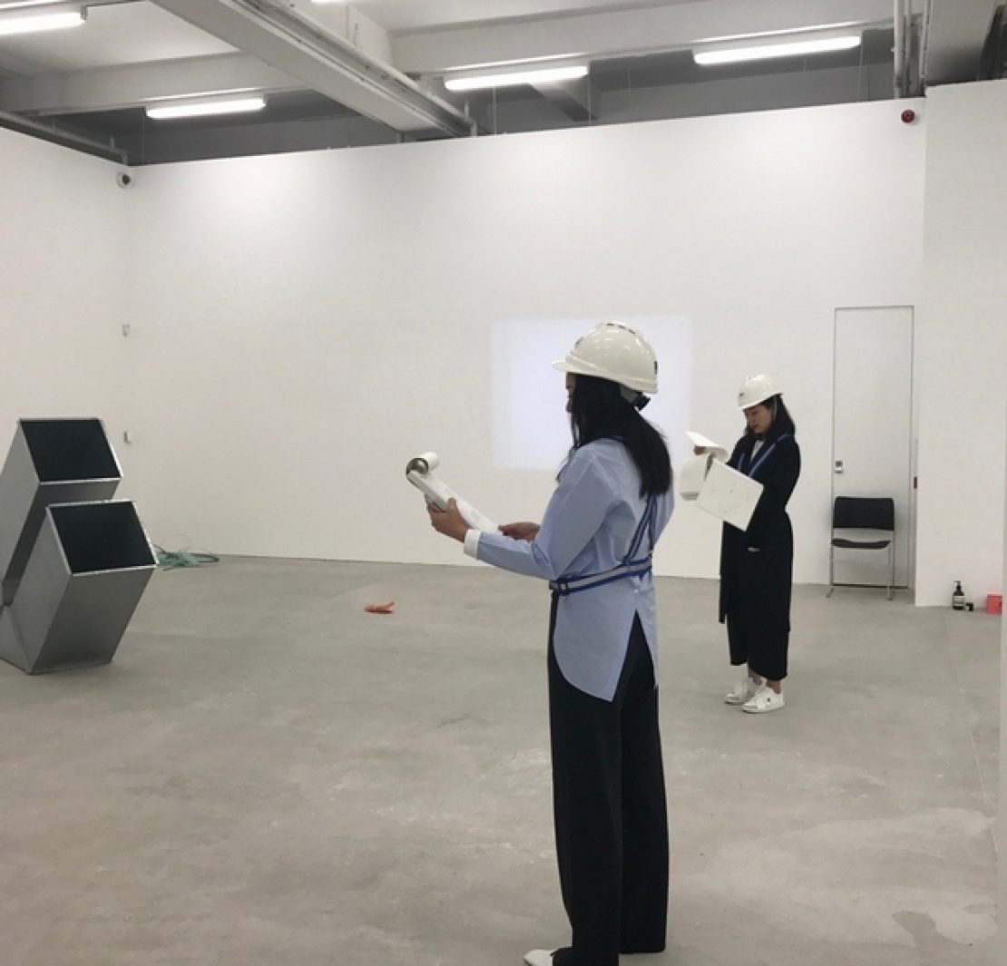 在幾天藝博會系列展的疲勞轟炸後走進這個奇特的展覽空間,感覺像是來到一片淨土,除了建築本身的特殊質感與十分開闊的展覽空間之外,佈展的方式與內容也留給觀眾很大的想像空間。展覽名稱「排演」(Rehearsal)在語境上直白點出現在最熱門、關於新世代美術館功能的討論,挑戰眾人對live arts及視覺藝術的既有認知,探問如果美術館展覽能夠排演,會是怎樣的呈現。