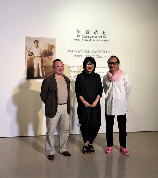 左起:三位策展人施俊兆、衣淑凡、姚謙共同主持「細看常玉」展覽開幕。圖片提供:陳芳玲