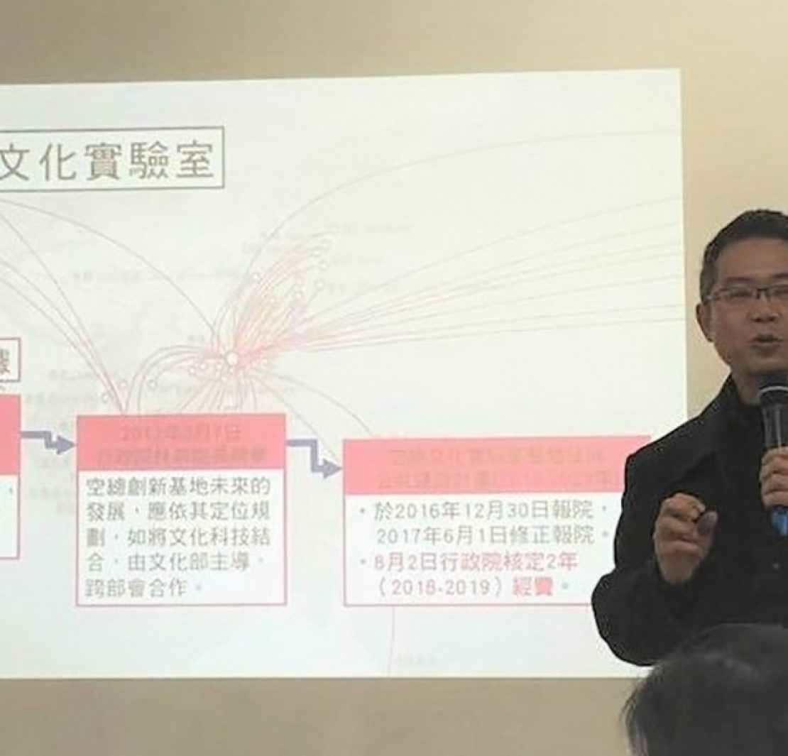 提起空總文化實驗室,即是仁愛路與建國南路交叉口的空軍總司令部舊址,對面就是豪宅帝寶,是典型台北市蛋黃精華區。面積達7.15公頃(21,642坪),格局方正完整,可用建築21棟。自從軍方外移之後,如何使用該址,曾令各方垂涎。主張就地開發加值派,希望重整規劃開發,發揮寸土寸金的高經濟效益與價值;但也有不少良心人士呼籲,台北不缺多幾棟水泥大樓,希望留住台北市最後一塊淨土……截至目前,文化部略取得優勢,希望朝「文化實驗室」的方向,作「0-1之間」的創意孵化,開放視覺、表演藝術家及團體使用,以落實2015年蔡英文總統發表的文化白皮書中,「厚植文化力、建置創意實驗室」的主張。