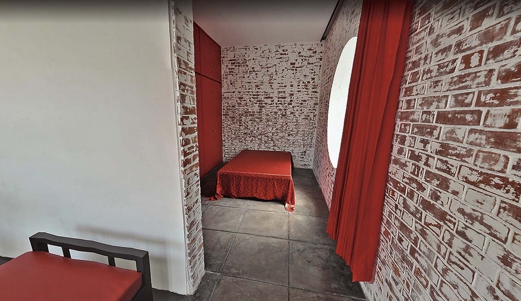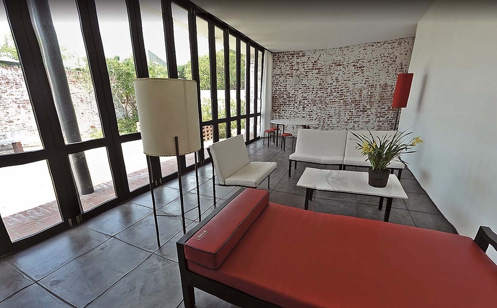 重建後的故宅,外圍聳拔磚牆,把喧嚷阻擋牆外,室內窗戶採圓形月洞窗,搭配格狀窗櫺,營造中國式庭園氣氛;客、餐廳落地窗門框則用上下軸承支撐,減少阻撓視線的外框,讓空間流動更順暢。這棟建築,完全體現王大閎先生早期設計風格理念,具保存、緬懷與研究價值。