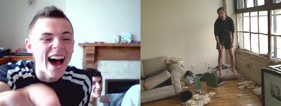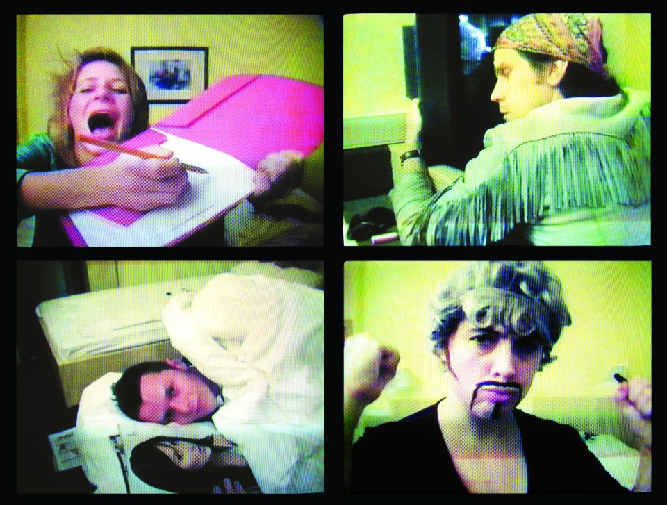 在「web」被組裝到「cam」之前,藝術家已有一套為鏡頭表演(performing for the camera)的實驗脈絡。1965年,白南準(Nam June Paik)用第一台感光元件數位化的可攜式攝影機Sony Portapak創作了《釦子偶發》(Button Happening),鏡頭特寫他的雙手在腹部來回重複解開又扣上衣服的鈕扣;1968年,布魯斯.瑙曼(Bruce Nauman)在自己的工作室一角,以鏡頭所匡限的舞台區,連續一小時用各種不同姿勢、體位,擺設自己在《牆壁—地板位置》(Wall-Floor Positions)間的編舞行動。當現場行為藝術、事件與身體運動進入到視窗與螢幕的行為錄像框架裡,藝術家藉由反戲劇敘事來處理影像的時間與空間再現。在這裡,影像是物質,而住在影像裡的身體及播映機具組成了一道裝置。