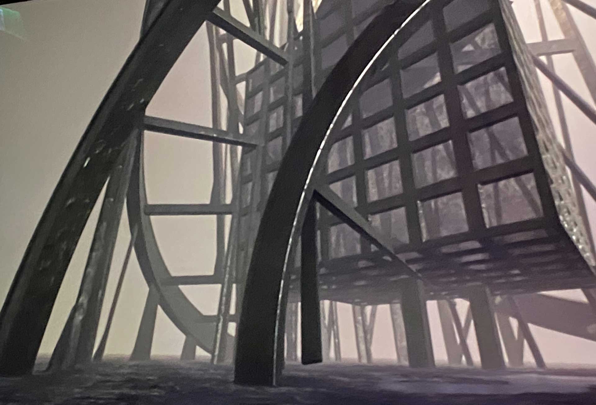 繼藝術家袁廣鳴的《人間失格》(2002),以數位技術將人從城市中抽離,藝術家陶亞倫用更先進的VR虛擬實境技術,在《無處不在的幽靈》(2020)中,試圖創造完全沒有人、沒有文明溫度的封印景觀。在陶亞倫似真似假之虛擬實境裡,觀看者的身體也要轉化成虛擬之體,依心理、記憶、知覺、潛意識的作用,想像這些虛擬實境變成一種切不掉的幻肢(phantom limb),以其虛擬的主體感知去面對虛擬的景觀,彼此成為彼此的一部份。此十個虛擬實境重構十個因歷史記憶或事件據點,所產生的飄忽幽靈景觀,包括了監視塔、專制者銅像、地下古墓神殿、巴比塔、雷達站、停屍間、病床間、原爆、塔特林塔、遊樂園等充滿恐懼、監控的文明權力空間。這些屬於人間與地獄過渡狀態的景觀(purgatory),又稱為凌波之地(limbo field)。它們是廢墟離境,但又如幻肢般根植於意識之中,成為一種預言式的副本風景。