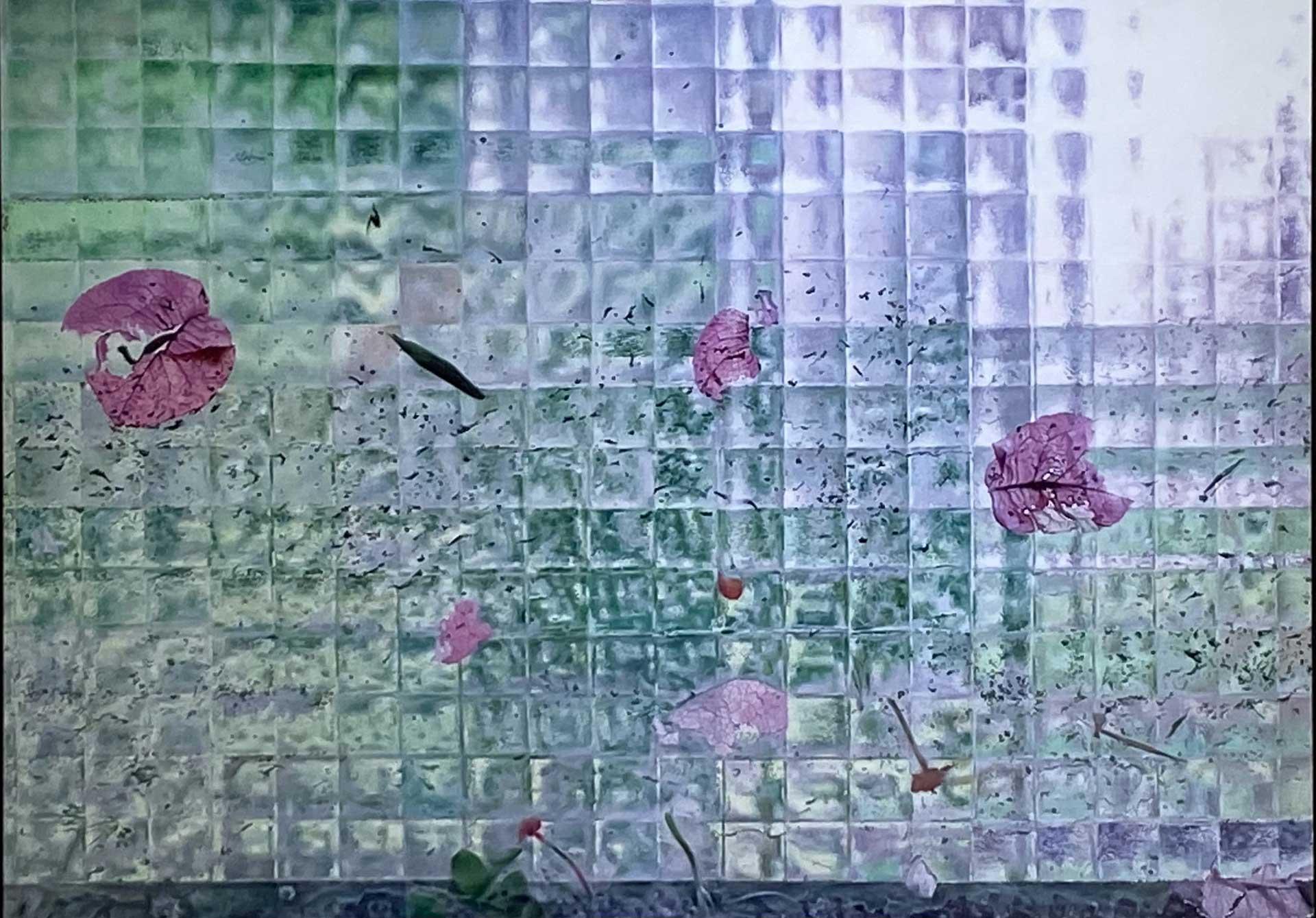 這是2021年「迷失在那種潛伏中」一展中,其中一位藝術家黃舜廷的作品。策展人陳寬育引用了葡萄牙作家佩索亞(Fernando Pessoa)的一句話:「我是個超敏銳的感光底片」(I’m a ultrasensitive photographic plate)。(註1)作為展覽美學詮釋角色的策展人,透過佩索亞〈三角形的夢〉之文本,界定此迷失於潛伏中的景象是:「以光的顏色為主角,施展對於空間中的光塵、微風、聲響、氣味、邊界、接壤、層次、溫度、濕度等主客體情狀之既專注又扭動的投注。」如是,在視覺條件與繪畫條件的辯證下,三位藝術家於隱藏與揭露、遺忘與記憶的畫面經營中,因在地植物、盒景、紗窗、磁磚、公路、建物等景物的出現,也具有了斯時斯地斯景的地方性了。