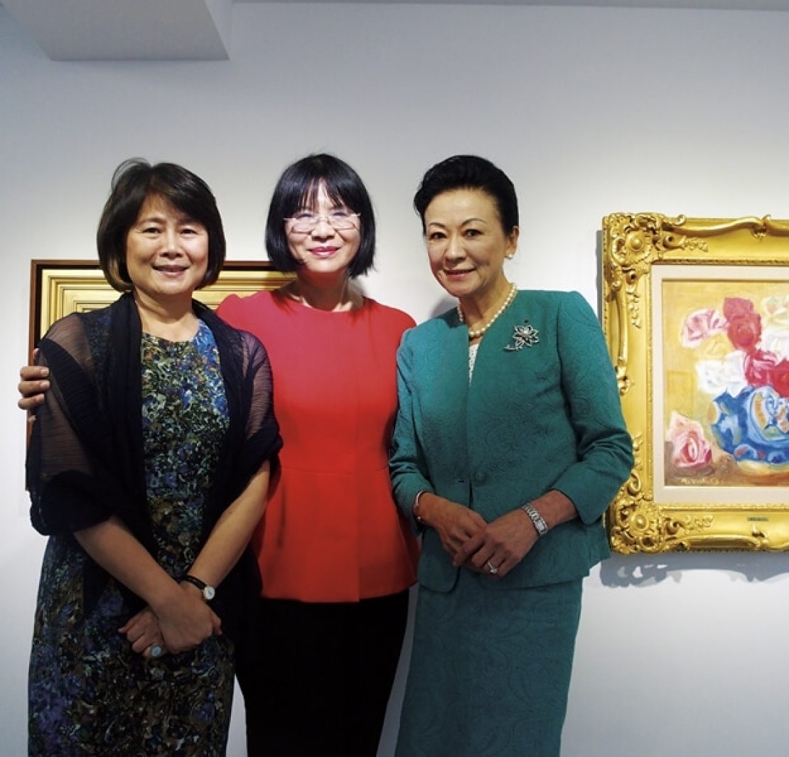 國藝會董事長林曼麗(左)、日動畫廊副社長長谷川智惠子(右)與典藏雜誌社社長簡秀枝合影。(日動畫廊提供)