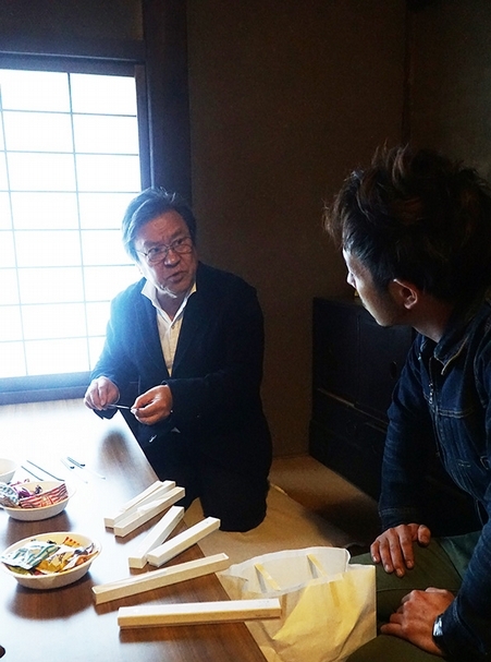 改建在蘋果公園內的古民屋,在公園內集結了津輕栽培的蘋果樹並可實際看到開花結果,這個古民屋內所舉辦的講座,是由把義大利紙箱藝術與日本傳統技法融合,創造出許多世界知名創作的,產品設計師喜多俊之來主持。面對許多新手工藝創作者們,講解了非常多結合傳統技法的商品開發設計手法與展望。