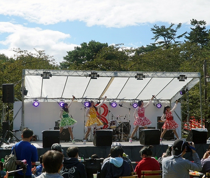 春天的弘前城被美麗的櫻花包圍,就在這個場地舉辦「弘前音話祭 Cross.S」,當地的少女們以蘋果為宣傳主題,組成了當地少女偶像團體「蘋果少女組」。