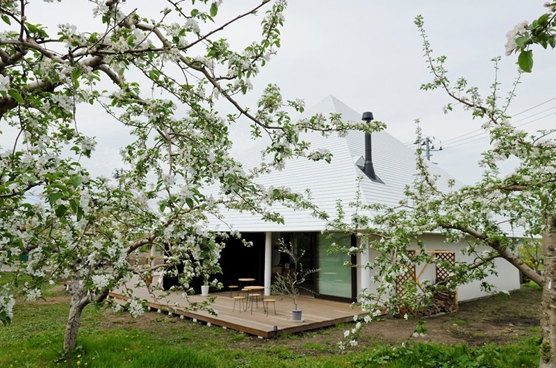 以白色為基底色,可眺望著蘋果田並享用氣泡酒的這個小小釀造所,是由當地的建築師蟻塚學設計的。