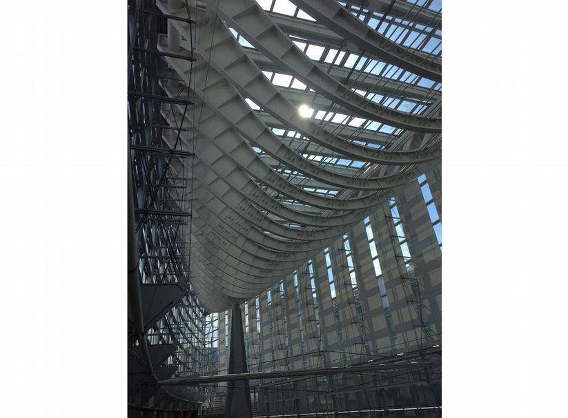 該建築,位於東京市區有樂町車站旁,順著鐵道的弧形轉彎線條,會議中心建築,被塑造成座「巨型方舟」的玻璃結構體,而且整個方舟的龍骨,倒覆在屋頂,作法大膽而前衞,令人嘆為觀止。