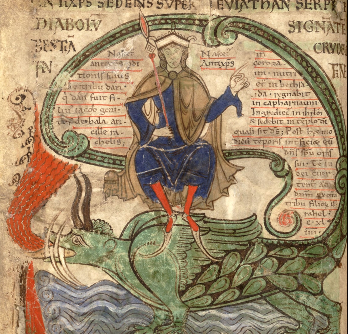 被刪除、抹滅、曲扭的失敗者,在各地都出現了被怪誕化的現象。鐵阿瑪被形塑成人獸合體,可視為「利維坦」(Leviathan)一族的原始形象與力量。希伯來文化的「利維坦」,其形象原型來自海蛇、鯨及鱷魚,有著「扭曲」、「漩渦」的含義。《以賽亞書》第27章即描述利維坦為「曲行的蛇」。(註5)而根據《以諾書》記載,母獸叫「利維坦」,住在海的深處,公獸叫「貝赫莫特」(Behemoth),住在伊甸園東邊的曠野。(註6)貝赫莫特意為「群獸」,暗指它是藉一大票集體勢力所形成的龐然大物,而貝赫莫特最終也佔領了母獸利維坦之名。此曾是平衡世界的雙性海怪。在近代政治哲學裡,因霍布斯(Thomas Hobbes)1651年的《利維坦》一書,已成為比喻強勢國家或強權機制的專詞。(註7)