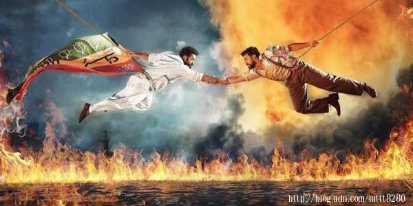 該片名來自泰盧固語:Raudraṁ、Raṇaṁ、Rudhiraṁ,意為「崛起、怒吼、反抗」。導演最终以簡單的《RRR》為片名。(註3)而片中兩位男演員名字,恰恰也有三個「R」字母。它以兩位真實人物拉朱(Alluri Sitarama Raju)和畢姆(Komaram Bheem)為原型,(註4)在編劇安排下,虛構出英國殖民時期的1920年代,雙雄相遇的起義故事。此片不走心理寫實主義,而是以印度神話、英雄、信仰的在地神人想像元素,連接歷史傷痛。在多樣的神鬼、電玩、歌舞套路下,影片大量使用了藍波式的戰鬥力、東西方各種高空落地、飆車、競馬等快慢定格鏡頭,再佐以誇張的動漫動作,陳述雙雄變成雙人層疊金鋼,以各種互動功夫獲得義和團式的神人勝利。