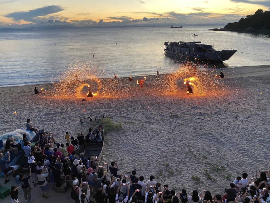 馬祖國際藝術島的開幕演出,以即將真火舞團《海神釀》格外吸睛,當日黃昏,馬祖境天后宮與馬港沙灘迎來以火為道具、海岸夕落背景,以及馬祖民間傳說的主軸,該舞團結合海岸地形,於沙灘上演出,以火舞對應落山風的狂野律動,展現大自然的力量與人類的抗衡。滾燙的沙地成為舞台,風與火交錯的瞬間,象徵著人與自然的共存與挑戰,火光沖天,映照著多情島地。