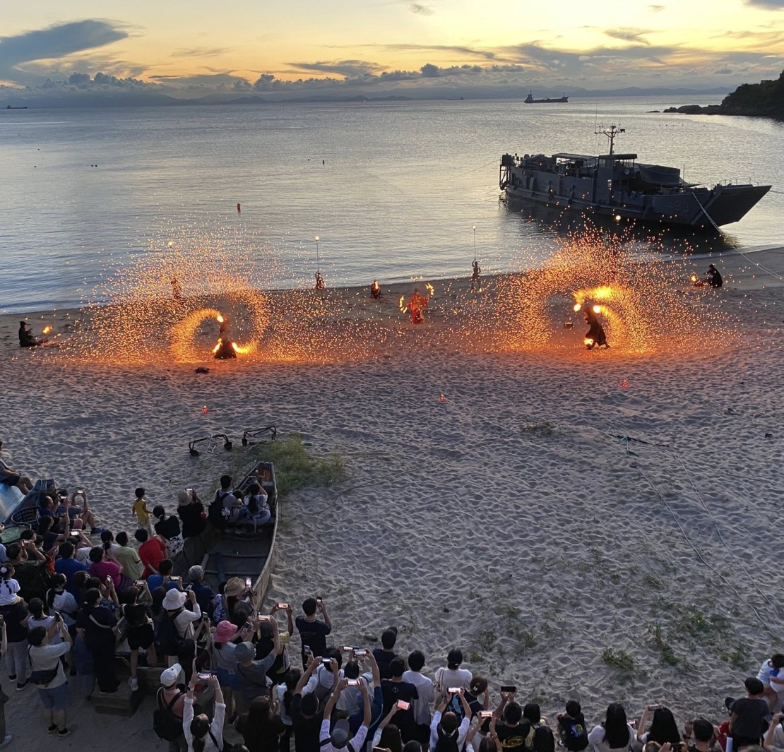 即將真火舞團於海灘表演《海神釀》,現場火光沖天,映照著多情島地。(攝影/簡秀枝)