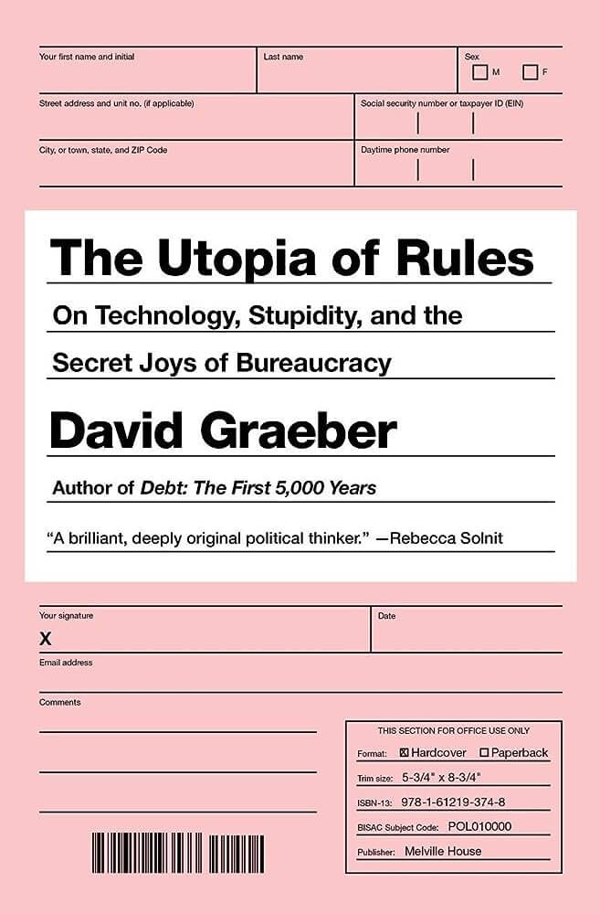 繁體中文版導讀人蕭育和教授為我們整理了葛雷伯的絕妙言論。首先是「自由主義鐵則」(The Iron Law of Liberalism):「任何市場改革、任何政府打算減少文書作業,並強化市場力運作的計畫,最後都只會導致這樣的結果:法定規則、文書作業與政府官僚的總體增加。」另者,「米賽斯(Luwig von Mises)被奉為經典的《科層制》(Bureaucracy)中所說,在經濟市場中失敗,但在政治民主中有投票權的魯蛇,加上想用行政手段解決魯蛇社會問題的善意,才造就了通往官僚集團失控膨脹的地獄之路。」