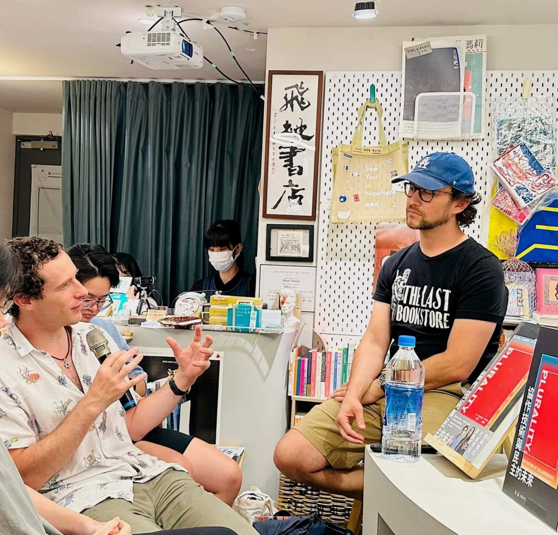 由於這是第二次討論這本書,所以氣氛格外輕鬆。衛谷倫在鵝黃色的燈光下一邊吃著鹹酥雞,一邊分享他眼中的台灣。此時他邀請一名朋友分享他最近做的專案。這位朋友穿著洛杉磯獨立書店「最後書店」(The Last Bookstore)的紀念T恤,戴著丹寧色鑲有LA字樣的棒球帽,舒舒服服地坐在書店角落的沙發。他說他叫做Joe,在洛杉磯開了一間人人都能參與的協作式製作公司,名為HITREC●RD。