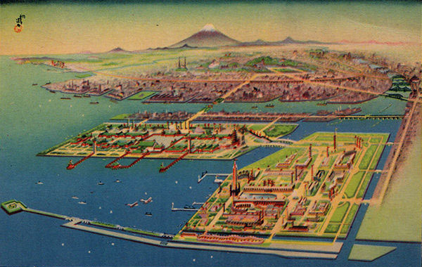 原定的1940年東京.橫濱萬博的東京場地,是設立於今日晴海、豊洲一帶的「4號、5號地」海埔新生地之上。考量海埔新生地於當時仍是嶄新的技術實踐,原定的東京萬博確實精準的反應某種「未來性」,且回應了東京作為國際工業化都會的可能性。當然,這些想望也隨著日本陷入地獄般的戰事而被一起埋葬。我們可以說,1964年的東京奧運與1970年的大阪萬博,正是對於1940年未竟之業的某種補遺。