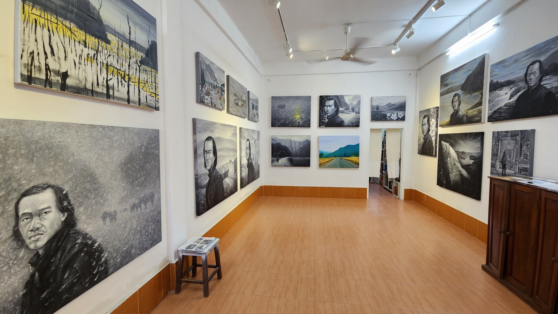 同時在寮國唯一的學院National Institute of Fine Arts(NIFA)任教的藝術家Mick Saylom,作品不少對於寮國社會提出批評的諷刺性畫作。筆者造訪藝術家工作室時,好奇於藝術家如何在學校老師、國家視角下的藝術家及個人創作之間取得平衡?後來發現藝術家Mick擅長風格的變換,可以自由地因應不同場合的需求而創作出風格可能截然不同的作品。當我問及一些比較尖銳的作品除了偶而可以出國展覽之外,平常只能放在工作室內會不會很可惜。沒想到藝術家反而回答我:「現在的寮國不能展,但100年後呢?」