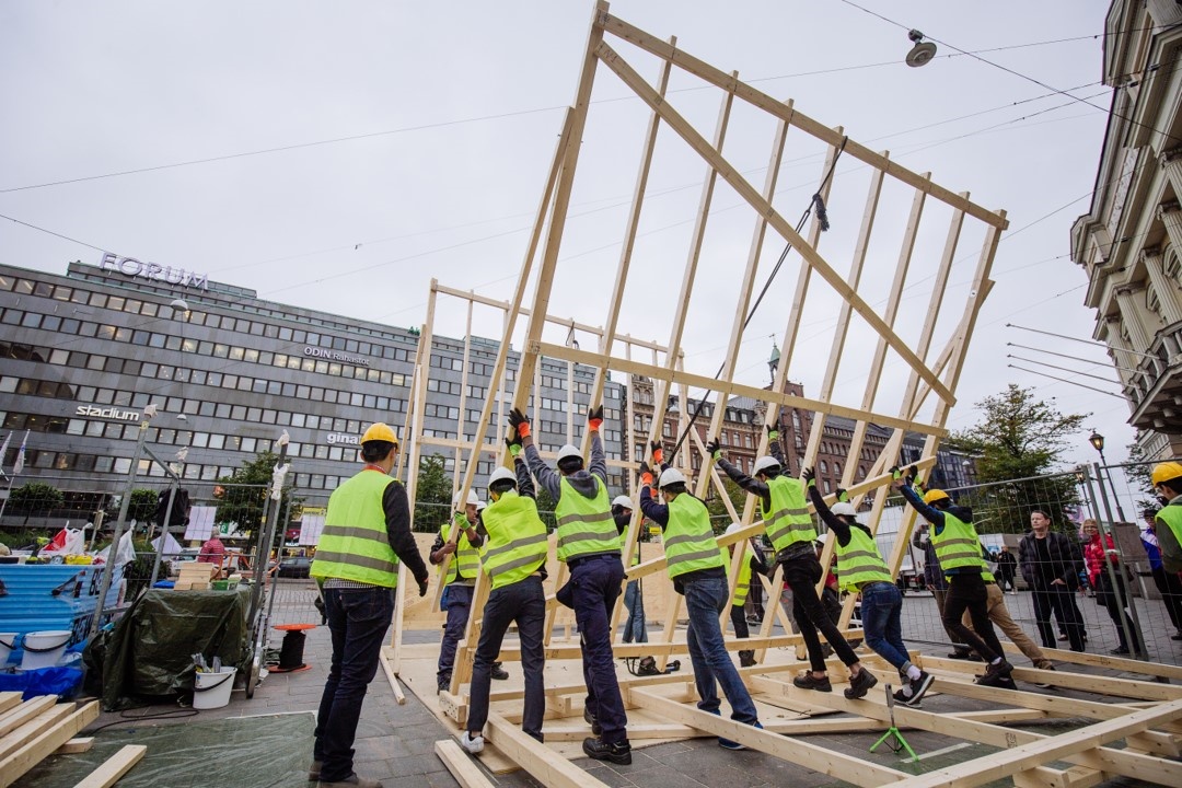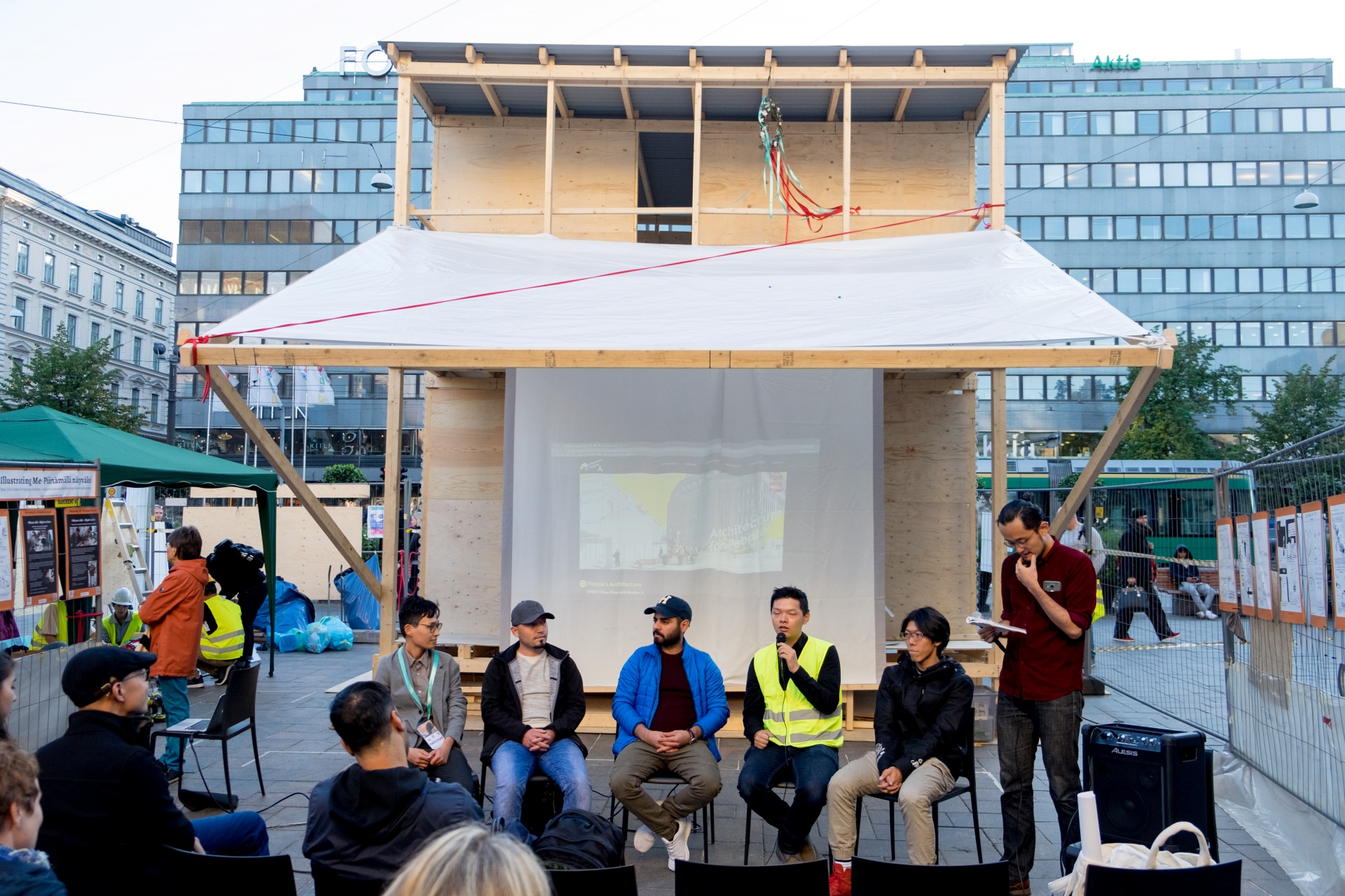 阮:你被邀去2017年赫爾辛基設計週,原計畫是在一個停車格裡面做一個小住宅,然後你發覺原來那裡有難民需要住宅,所以就提出原來沒有的新構想,讓難民自己動手蓋房子並參與展覽。當時設計週的主題就是Architecture for people嗎?