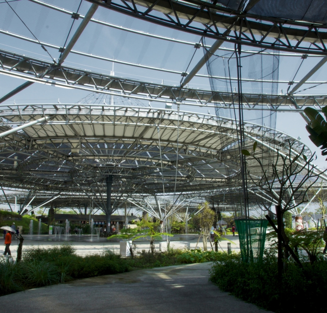 阮:你把大小系統關係做得最清晰的作品,是屏東六堆的客家園區,你在劃定的範圍做出大傘架,那就是大系統,然後底下的各種小建築體可以簡單做起來,因為地震、太陽和風雨被擋了,所以不用花很大力氣去做防水防震,便宜還可以一直修改,兩個系統的關係非常清晰。