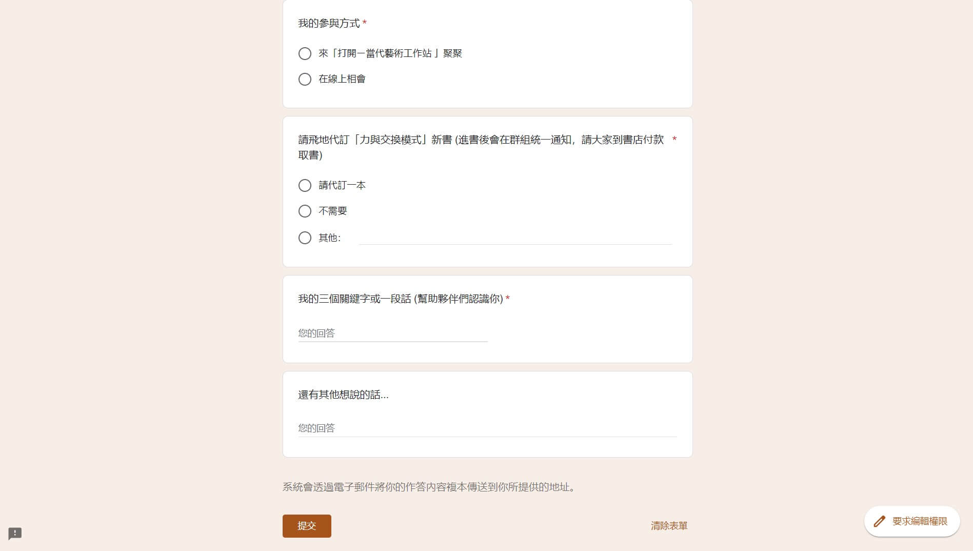 在Web3的世界,人們總是言必出「社群」,而我們知道,這裡的「社群」相比於臉書專頁和特定IG帳號的「粉絲」,是更有主動能動性的。社群中人可以真實擁有自己的資產和貨幣,選擇是否揭露自己的身分,能力許可的話,隨時可以成為代幣的發布者;從加密金融到區塊鏈藝術,持有者、支持者和消費者具有更高程度的主導權,藉此跟相關內容的提供者、創作者和生產者結為一體,一定程度繞過中介。「Web3 for all」的群友深知這些道理,也在網上、鏈上設法踐行,不管是推動專案,促成組織,還是就像前文所說的,進行研究、參與知識的討論;有趣的是,我們平時溝通的媒介卻是臉書這個典型的Web2工具,心中更渴求著連Web1都不需要的溝通方式,那就是見面。讓我們把「社群」這個詞的引號——同樣是一個中介——拿掉,讓它更立體而不特指什麼;社群就其本身而言,無所謂Web3、2、1或可以貫穿Web3、2、1,社群永遠只是社群的社群,不是市場的或國家的社群。