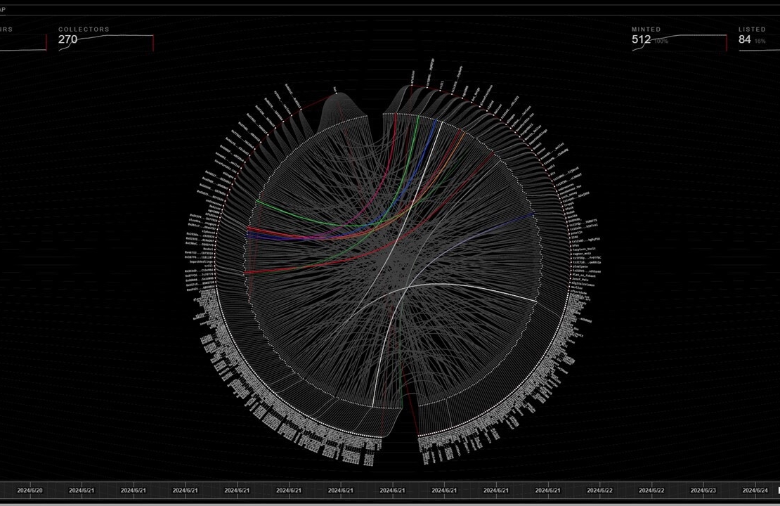 《Entangled》的圓形儀表板,周圍代表刻度的符號實為藏家名稱或其錢包地址。