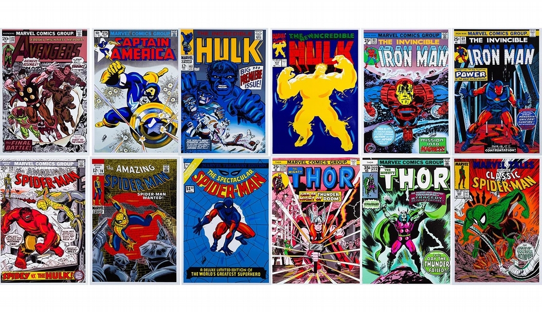 斯坦·李(Stan Lee) 漫威超級英雄漫畫封面 1 套 12 件,布面手工裝飾微噴版畫 2015 全球限量 9 版之 1,每版均有不同顏色,簽名:附藝術家親筆簽名、年份及真品證明書 ,估價:2,400,000-3,200,000港元。(華藝香港提供)
