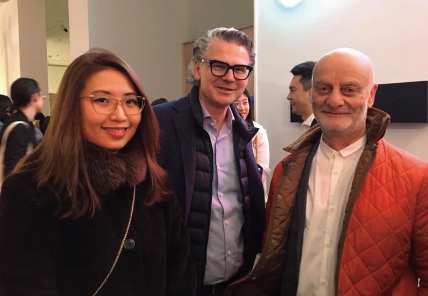 創立於1987年瑞士Mai 36 Galerie 畫廊,負責人維克多.吉士樂(Victor Gisler,中)與知名收藏家烏利.希克(Uli Sigg,右)關係密切。 兩人都非常器重王維薇(左)的藝術專業與人脈資源。(簡秀枝提供)
